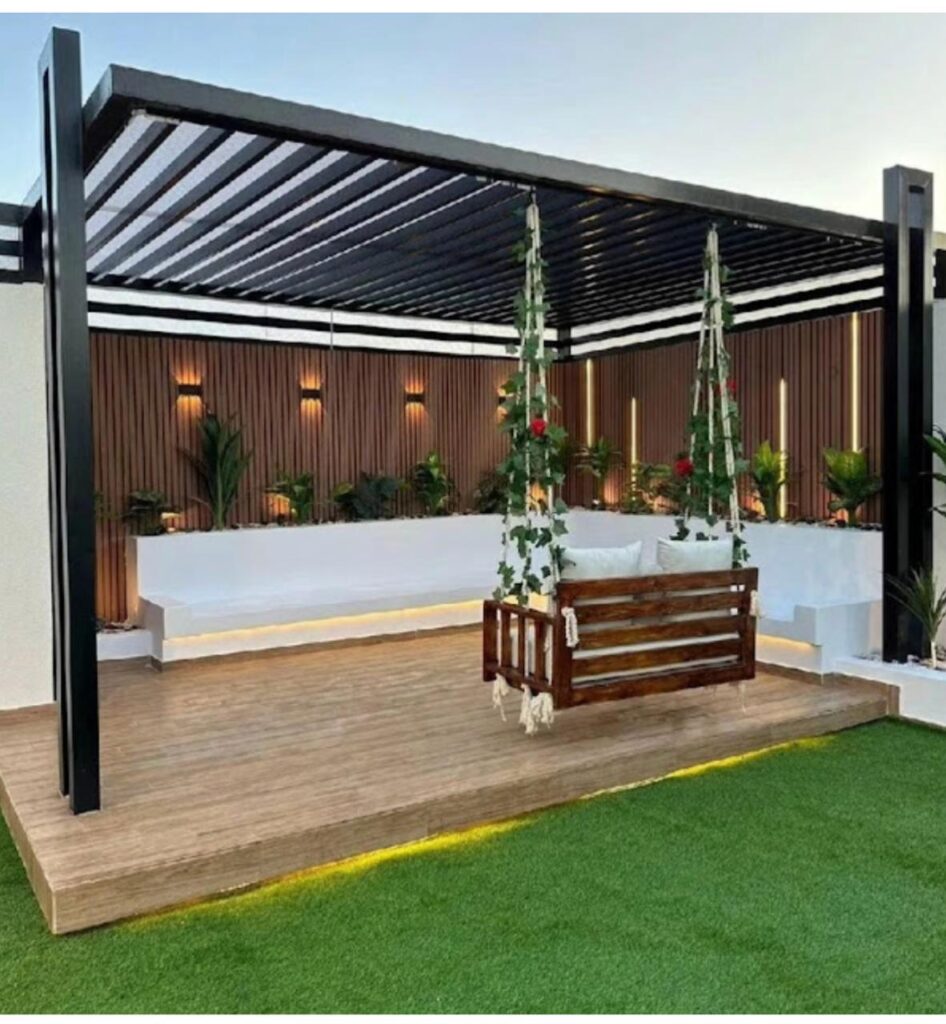 المظلات والبرجولات: تركيب مظلات السيارات، الجلسات الخارجية، والبرجولات الخشبية والحديدية بأنواع متعددة (مثل القماش، اللكسان، والحديد).