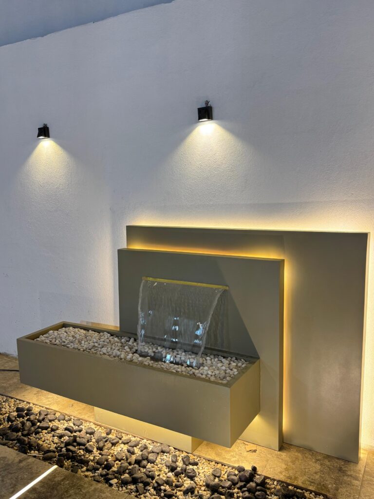 الديكورات المائية والخارجية: تنفيذ الشلالات، النوافير، والأنظمة الضبابية (الرذاذ) لإضافة لمسة جمالية وتلطيف الأجواء.